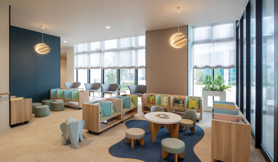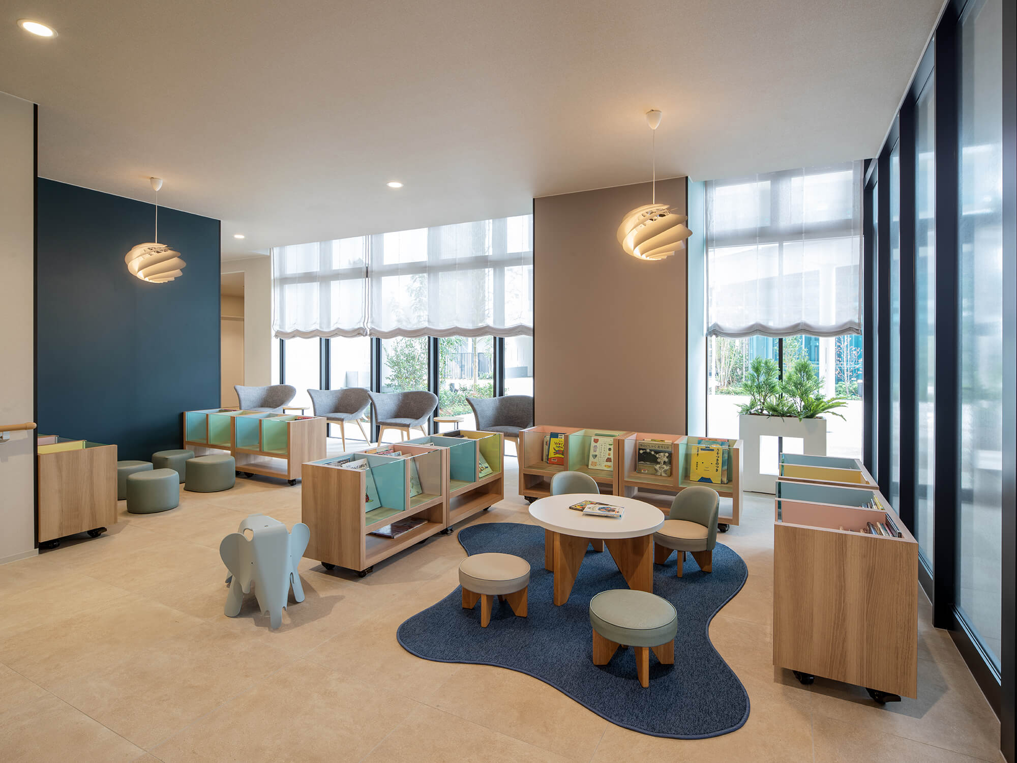 レストランは入居住民が利用する他、一般客にも開放され、近隣の親子連れなどの利用も想定された空間だ。