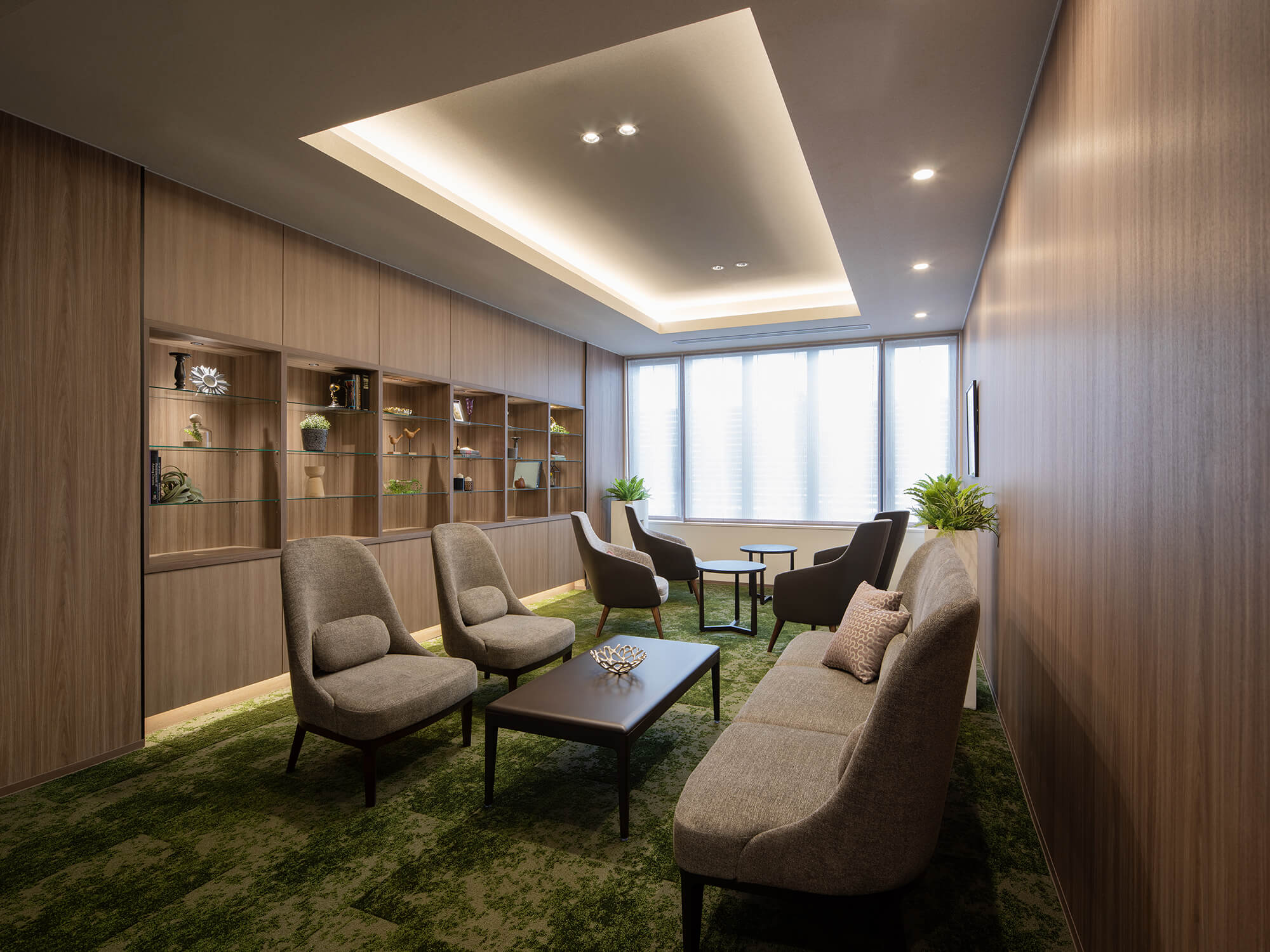 さわやかで明るく、どの世代の方も気持ちよく過ごしていただけるような家具・張地・インテリア装飾を選定した。